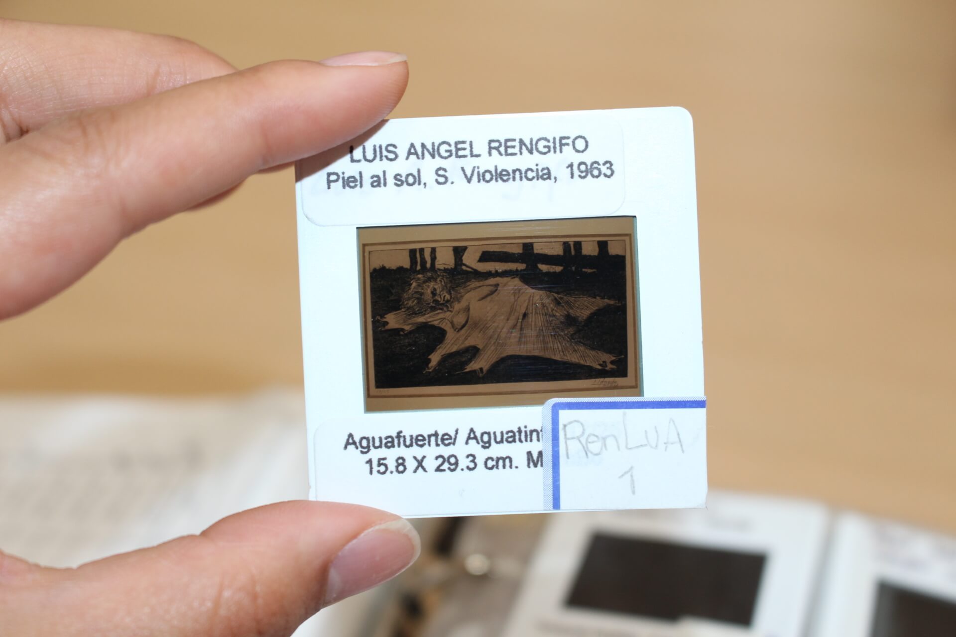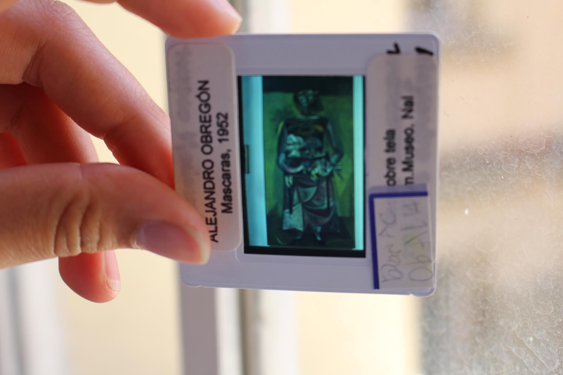 Colección de diapositivas donadas a la Facultad que registran colecciones de obras artísticas existentes en el Museo Nacional y la Biblioteca Luis Ángel Arango.
