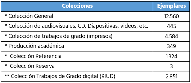 - Fuente: Datos del Sistema de Biblioteca sistema de información bibliográfico ARC – RIUD Repositorio Institucional.