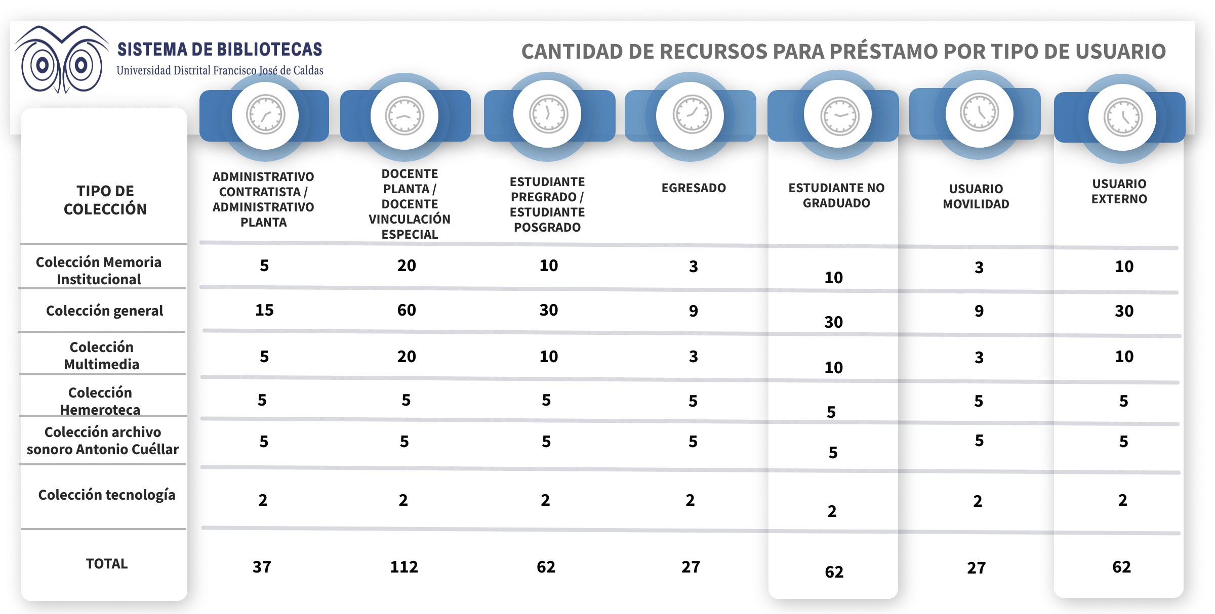 Cada uno de los materiales bibliográficos que componen las colecciones forman parte del patrimonio bibliográfico y documental de la Universidad Distrital Francisco José de Caldas y están conformadas por contenidos en diferentes formas, formatos, y se clasifican en: